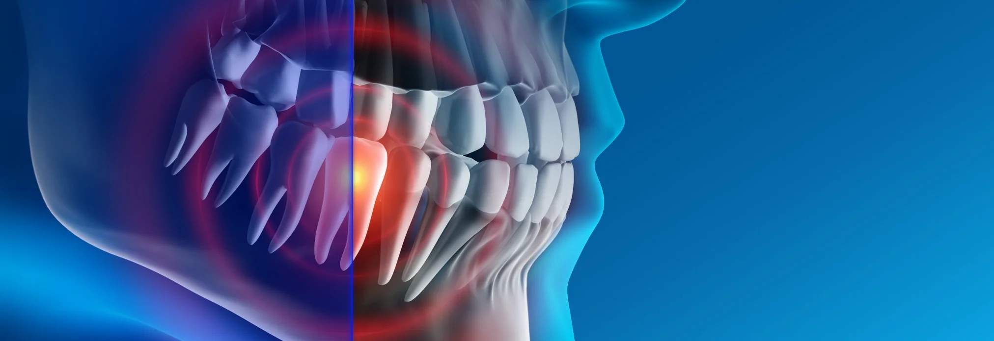 Смещаясь, зуб начинает притираться к соседним, повреждая эмаль — возникает кариес: