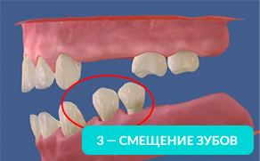 Оставшиеся зубы смещаются в сторону и вытягиваются из десны. Зубам необходимо иметь опору (особенно при жевании). Если такой опоры нет, то они начинают её искать и выдвигаться из десны.